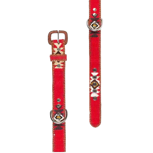 Un collier au style bohème, avec un joli tissu kilim coloré et des finitions en cuir tressé.