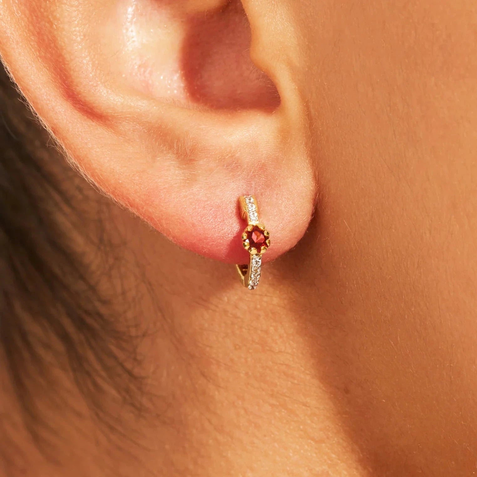 Couleurs : Mini Créoles Rive D'or Serties Zircon Grenat