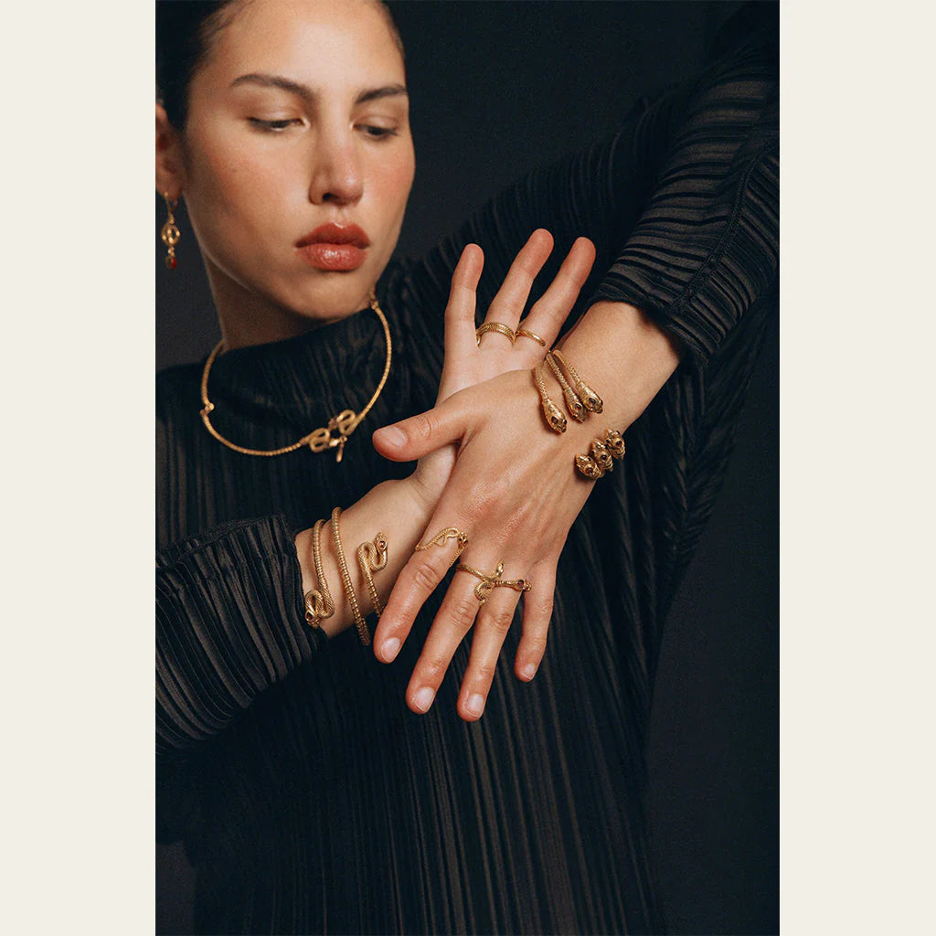 Allure impériale et charme mystique : le bracelet Sissi de LA2L séduit par son design audacieux et symbolique. Orné de deux têtes sculptées se faisant face, il incarne force et élégance, sublimé par la douceur de la pierre de serpentine.