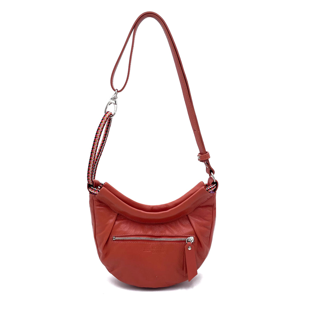 Notre sac Kosha Julie Meuriss offre une polyvalence inégalée grâce à ses options modulables : porté à l'épaule, en bandoulière, ou même en version banane !