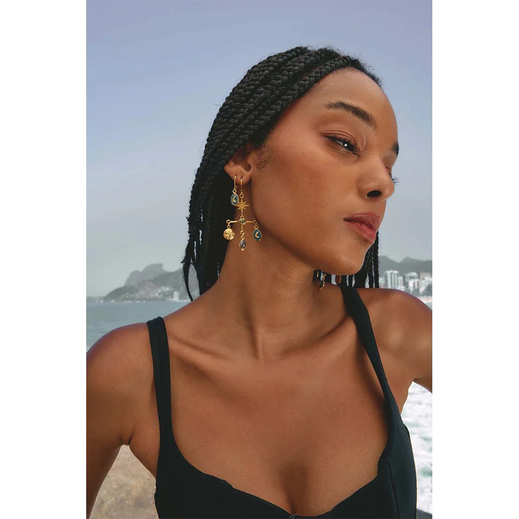 Ces boucles d’oreilles dévoilent un croissant de lune délicatement posé sur un médaillon émaillé. Subtiles et lumineuses, elles apportent une touche céleste et poétique à votre visage.